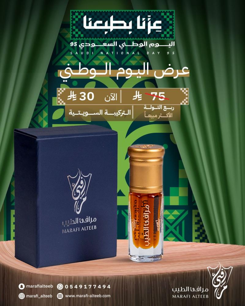التركيبة السويتية خلطة عود بربع تولة من مرافئ الطيب، عطر أنثوي فاخر يتميز برائحة حلوة ومميزة تدوم طويلاً، وهو من الأكثر مبيعاً ضمن عروض اليوم الوطني بفضل تركيبته الغنية والجذابة.